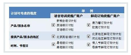 可根据产品/服务名称、推广预算、推广地域、提供产品/服务地区等维度划分多个计划(还可将以上维度适当组合);对特殊事件,如促销、活动等可以单独建立一个计划。